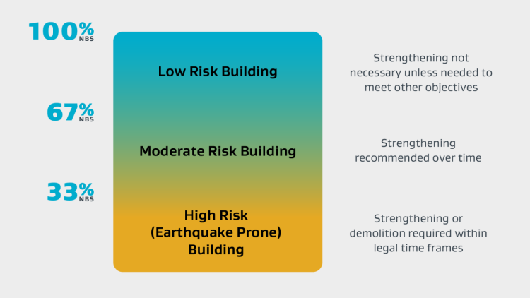 If a building is less than 34% of the New Building Standard, it may be classified as earthquake-prone under the Building (Earthquake-prone buildings) Amendment Act 2016 (EPB). This means the building is more likely to sustain damage in a moderate earthquake and, as a result, there is a higher risk than in a new building. The law requires that this risk reduces over time.